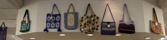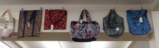 The 70+ bags have been handcrafted and donated by members of the Double O Quilters and the Desert Sage Spinners and Weavers, as well as other individual members of the community. Each one is a uniquer work of art!