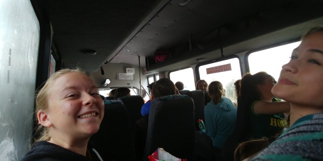 It all starts on the bus. Sharing a bus with the junior boys we all head to Kelowna to try winning the tournament . The girls lose the first game on the third set. 10- 15 On the second game girls win on third set 15- 11 our winning point from Nya.