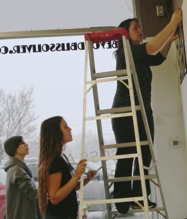 Jordon, Ali and Mrs. McVicar are in the house to hang the class show