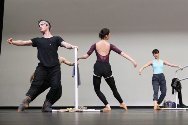 They start with simple stretches at the bar.
