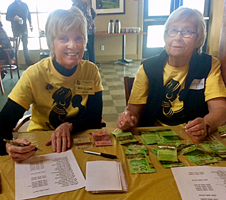 Oliver Grandmothers for Africa, Marion Boyd and Betty Lou Trimmer Bahnsen, do some serious counting at the windup of a hugely successful fund raising Bridge Tournament on February 21st for the Stephen Lewis Foundation.