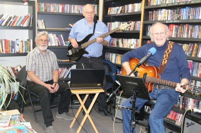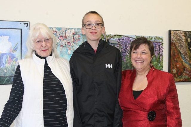 Sally my enforcer, long time reining Queen of the Oliver Art World, with Brandon a student of ours from years ago . . . how did he get so tall? . . .with the styling happy artist Lorraine.