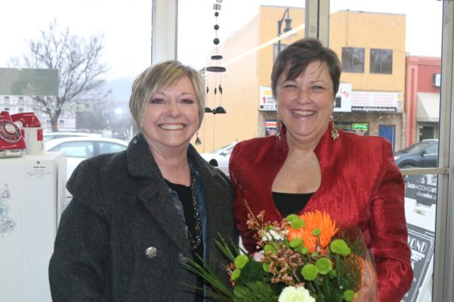Our own gallery Artist Diane Gane arrived with a gorgeous bouquet of flowers.