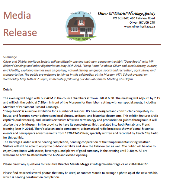 Executive Director Manda Maggs invites you to the Ribbon Cutting of “Deep Roots” the new permanent exhibit at the Heritage Museum May 16 at 7:30.