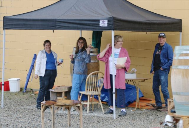 Across the street the artist are starting their barrels. Come on down and see what Lorraine, Katherine, Marion and Duane, the cheerleader, are up to.