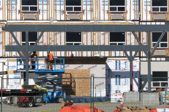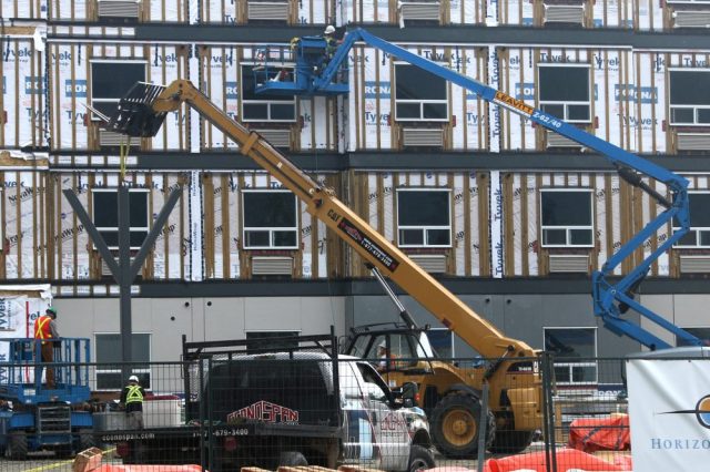 Love watching the hotel go up! The first fancy post of the entrance in place in the morning.