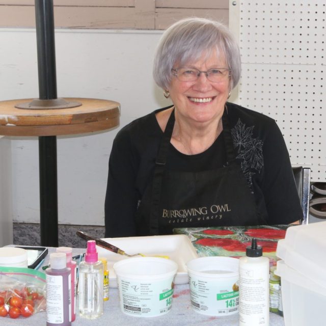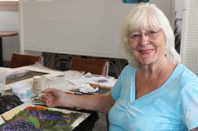 Sally Franks, President of the Sagebrusher, is finishing up a watercolour of grapes. Wonder where she gets her inspiration?
