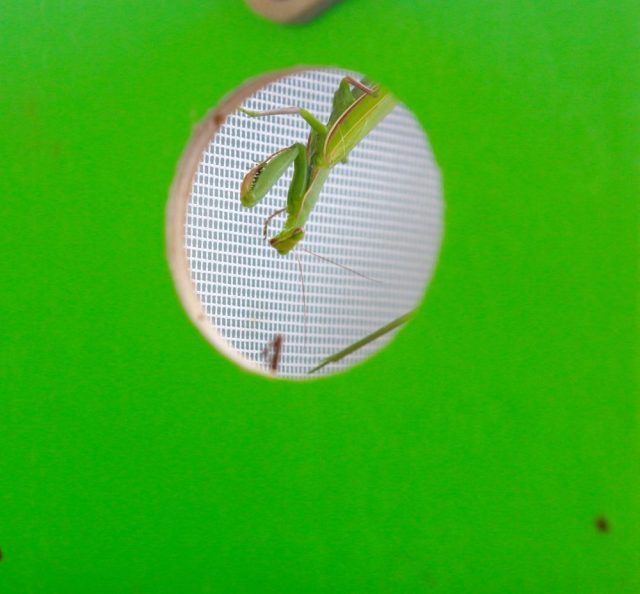 There was my BFF at my door with a praying Mantis in a bug box!!!!