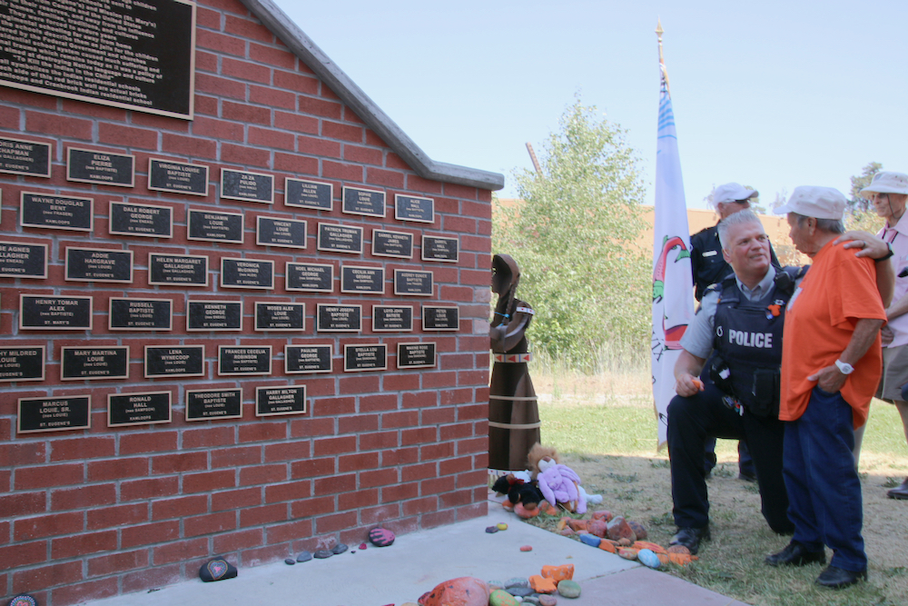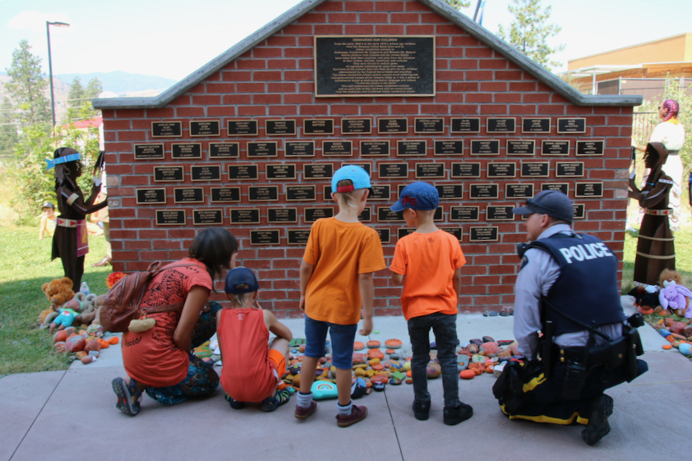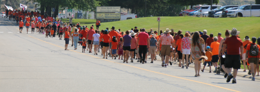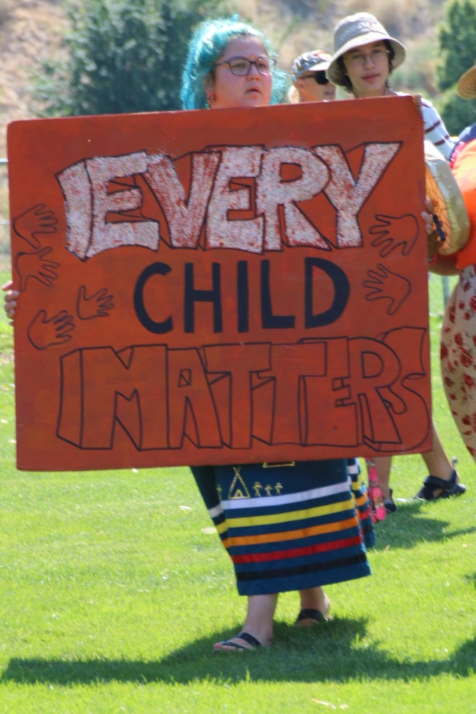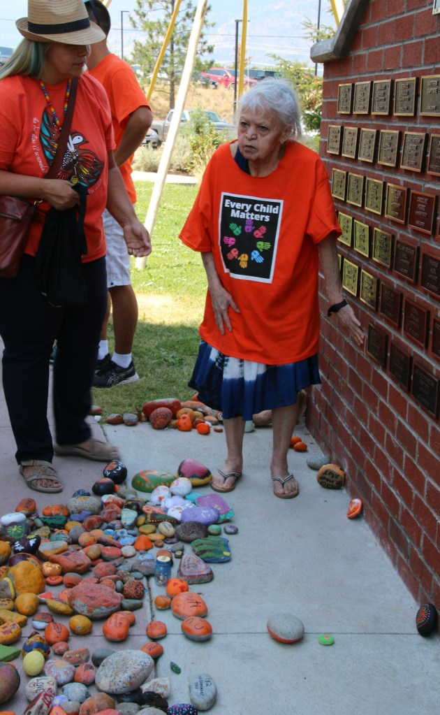 Residential School Walk to RememberOliver followed and listened.This says it all.“They did not believe the children” said Jane Stelkia, survivor of the residential school in Kamloops.Changes are needed and our young ones are the place to start.Friendships made.Rocks laid.Bernice Falkus, survivor of the residential school in Kamloops, placed a rock at the wall. The wall has plaques with Bernice’s name and the name of 68 other Osoyoos Indian Band members. Some did not come home.Today we came together.